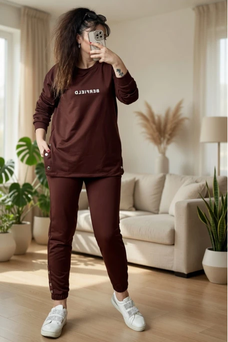 Uzun Kol Yan Çıtçıtlı Kahve Takım