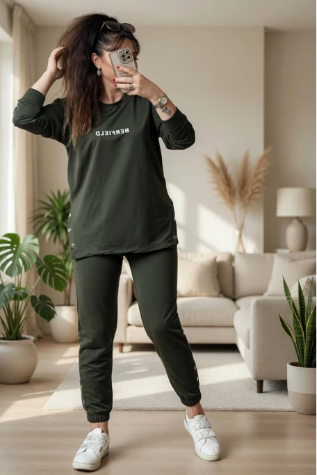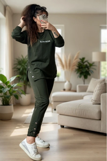 Uzun Kol Yan Çıtçıtlı Haki Takım