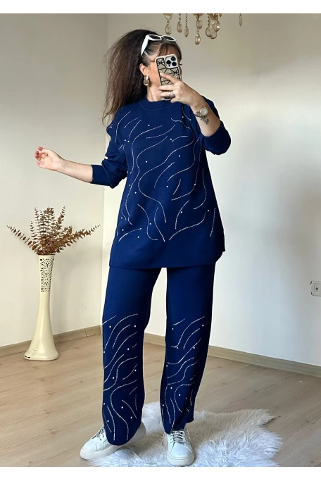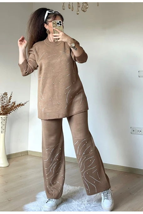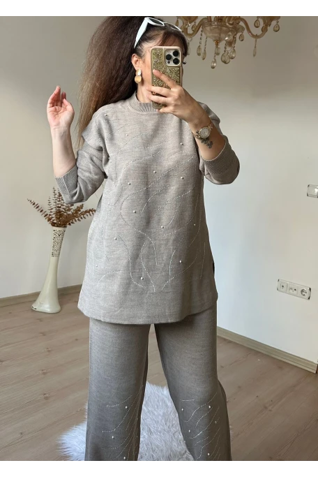 Omuz Ve Paça İncili Taşlı Takım Bej