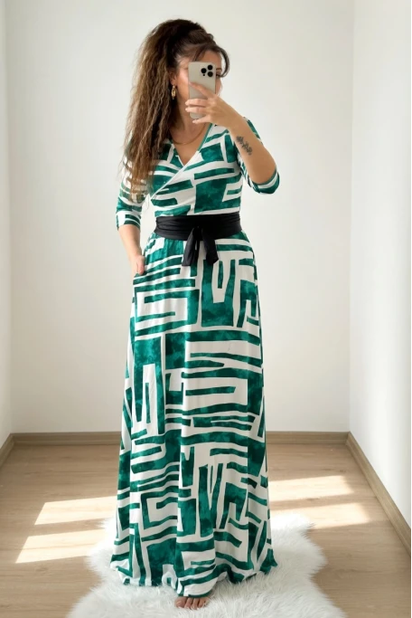 Tam Boy Turkuaz Geometrik Desen Elbise